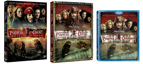 Buena Vista sacará tres ediciones de 'Piratas del Caribe: En el fin del mundo': Una edición simple de un solo disco, una edición limitada con dos discos, y una edición en alta definición (Blu-ray).