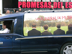 Durante toda la tarde un coche funebre se paseo por Donosti con publicidad de la película Un Funeral de muerte dirigida por Frank Oz