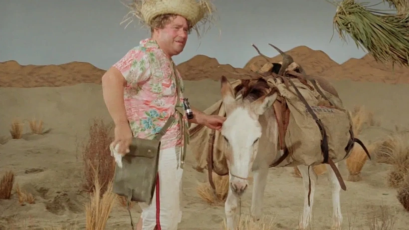 Un buscador de oro en el desierto se pierde y descubre un oasis habitado por hermosas doncellas.